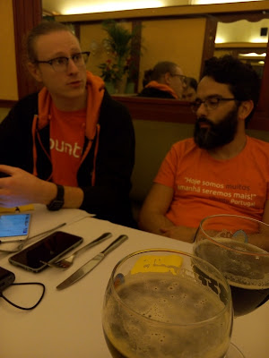 Interrumpí la sesión para ir a comer con Tiago y Diogo. Tras comer coincidí con Jeroen, que no le veía desde la Ubucon Europe. Charlamos largo y tendido, tanto, que me salté 6 charlas.