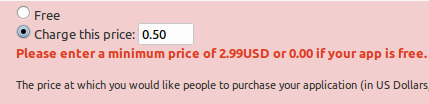 I have uploaded a little application to the Ubuntu Software Center. This time, I wanted set a price, I was thinking in 0.5$… but the USC has this requirement: